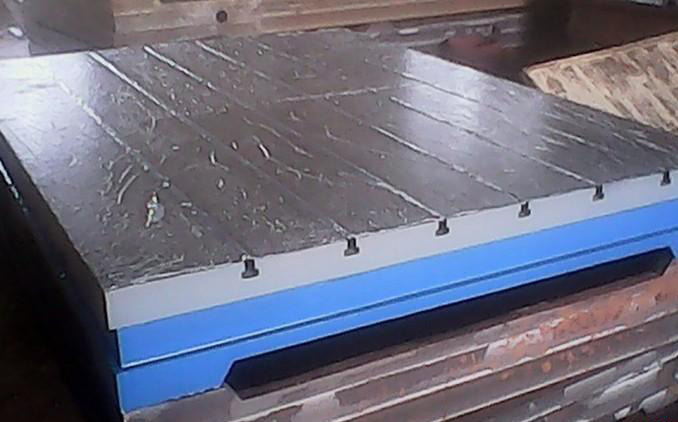 我公司生產(chǎn)的鑄鐵T型槽平臺(tái)工作面采用的是刮研工藝,用涂色的方法進(jìn)行檢驗(yàn),保證了平面的精度。工作面一般有T型槽,也可以根據(jù)要求加工長孔和圓孔,這種T型槽平臺(tái)采用的是優(yōu)質(zhì)純鐵鑄造而成的。我公司生產(chǎn)T型槽平臺(tái)廣泛應(yīng)用在動(dòng)力機(jī)械設(shè)備的裝配、調(diào)試、焊接、鉚焊,這種產(chǎn)品表面帶有T形槽,可以固定機(jī)械設(shè)備。另外需要提醒的是,我公司可以根據(jù)用戶的要求,定制各種規(guī)格的T型槽平臺(tái)。我公司為黑龍江康潔機(jī)電設(shè)備公司生產(chǎn)的1500×3000T型槽平臺(tái)14塊下面是生產(chǎn)現(xiàn)場中圖片場景:
